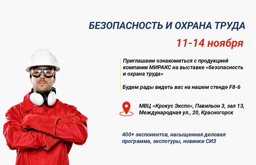 Приглашаем ознакомиться с продукцией компании МИРАКС на выставке "БЕЗОПАСНОСТЬ И ОХРАНА ТРУДА"
